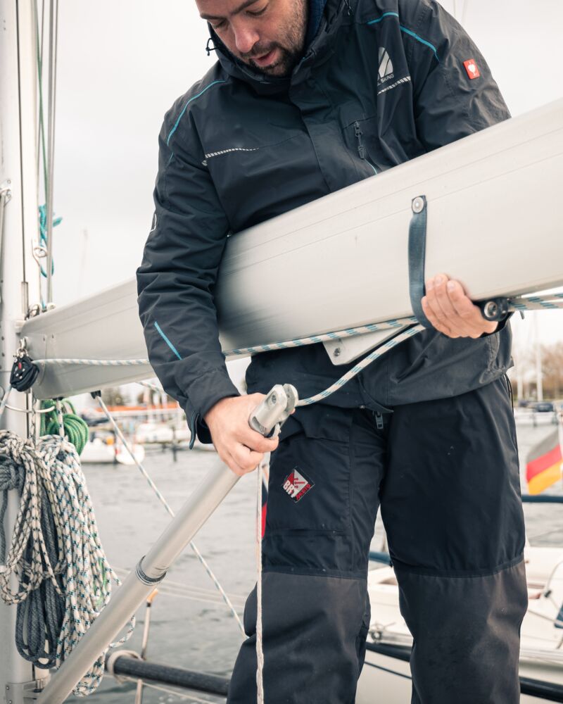 Unsere Rigg-Teams in Damp und Fehmarn stehen dir im Winterlager und am Mastenkran beim Mast stellen, riggen oder Anschlagen der Segel unterstützend zur Seite.