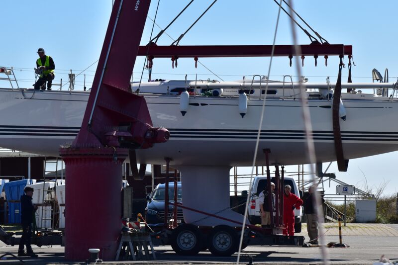 Unsere Rigg-Teams in Damp und Fehmarn stehen dir im Winterlager und am Mastenkran beim Mast stellen, riggen oder Anschlagen der Segel unterstützend zur Seite.